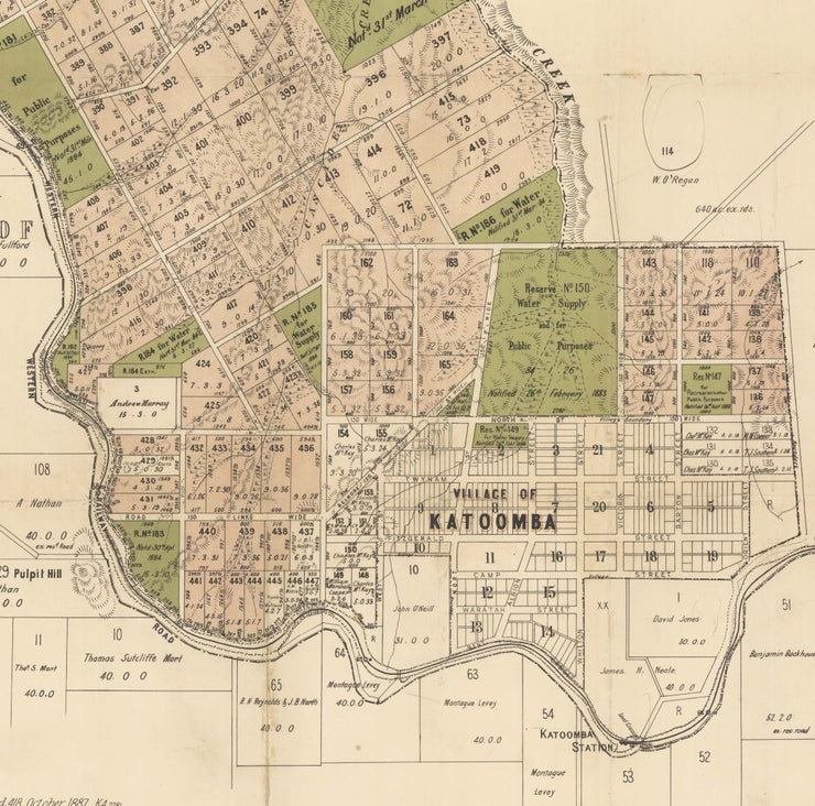 Before the tourists and boutique stays, before the boardwalks and scenic lookouts, there was just Katoomba — a rugged village perched in the misty folds of the Blue Mountains. This original 1890 map print offers a rare glimpse into that quieter time, when the town was just beginning to etch itself into the escarpment.