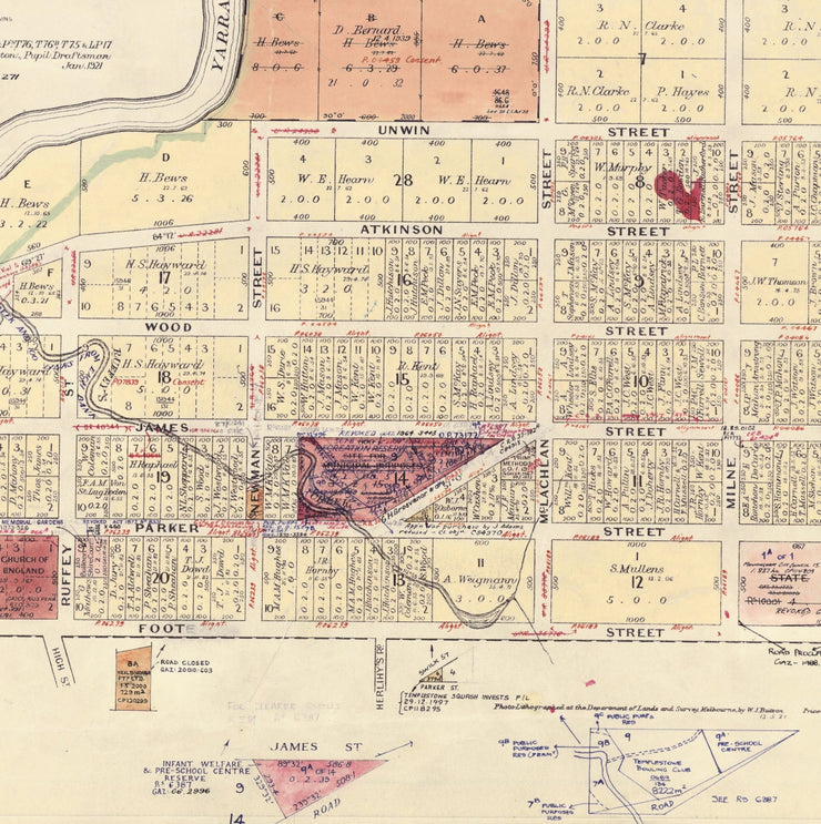 Drawn in 1921, this detailed map of Templestowe, in Melbourne’s northeast, captures the region at a time when farmland, river bends, and unsealed tracks defined the landscape. It records a quiet, agricultural district just beyond the edge of early 20th-century suburban growth.